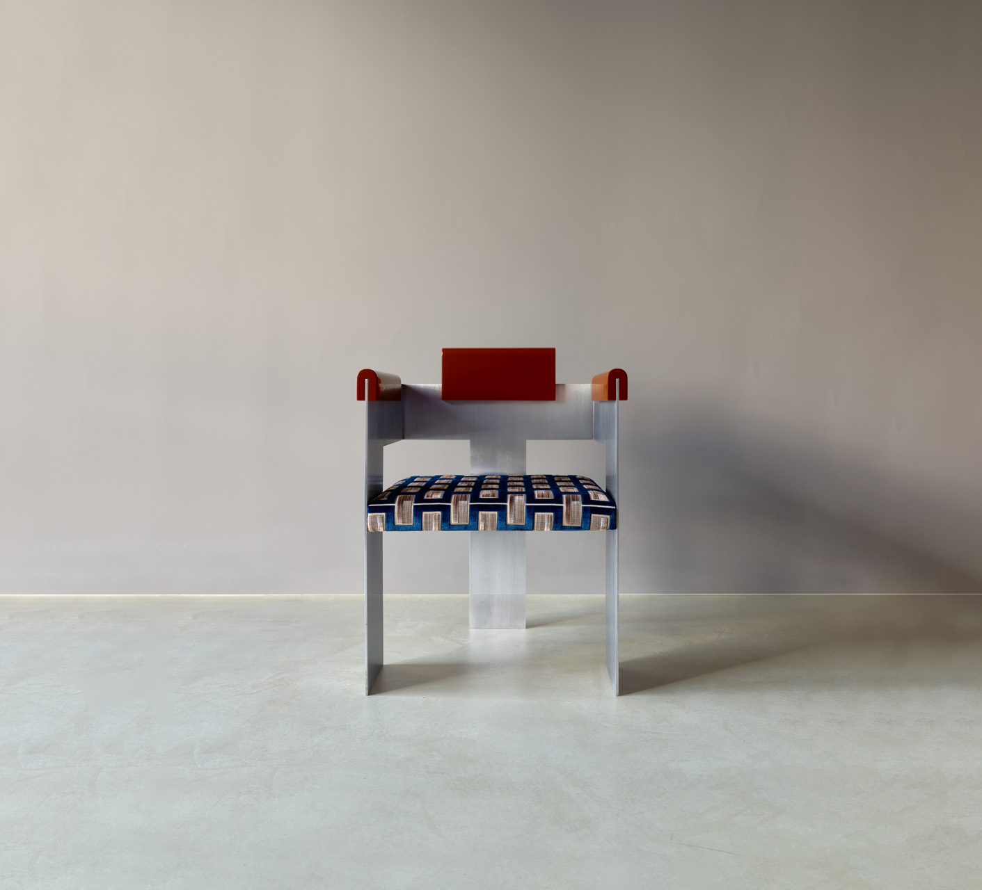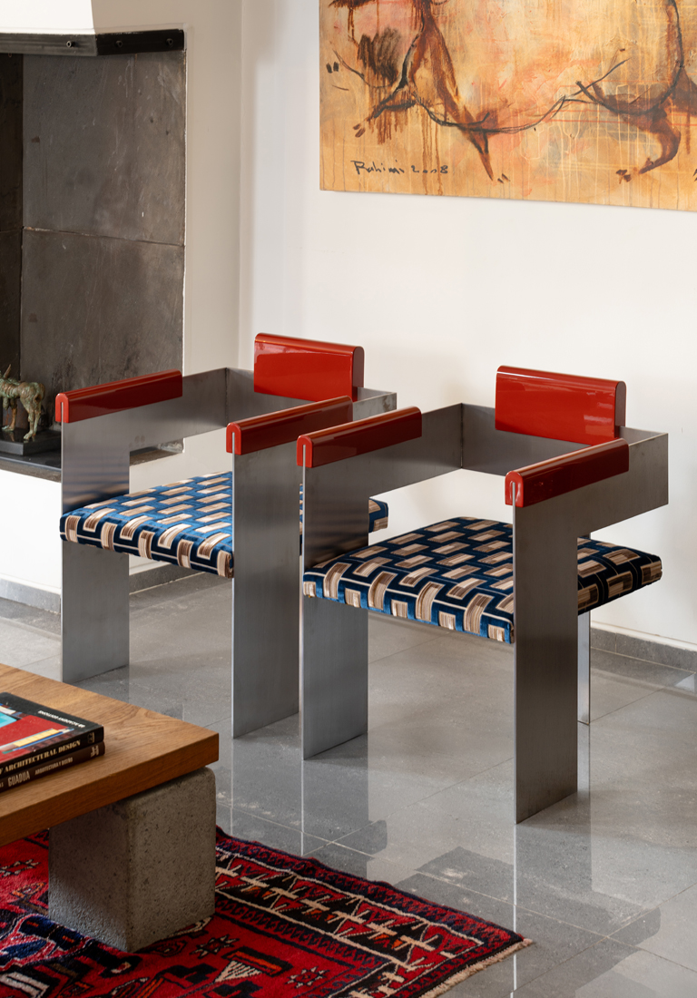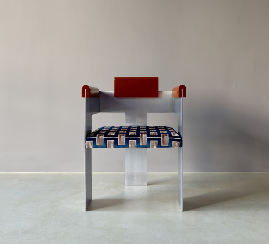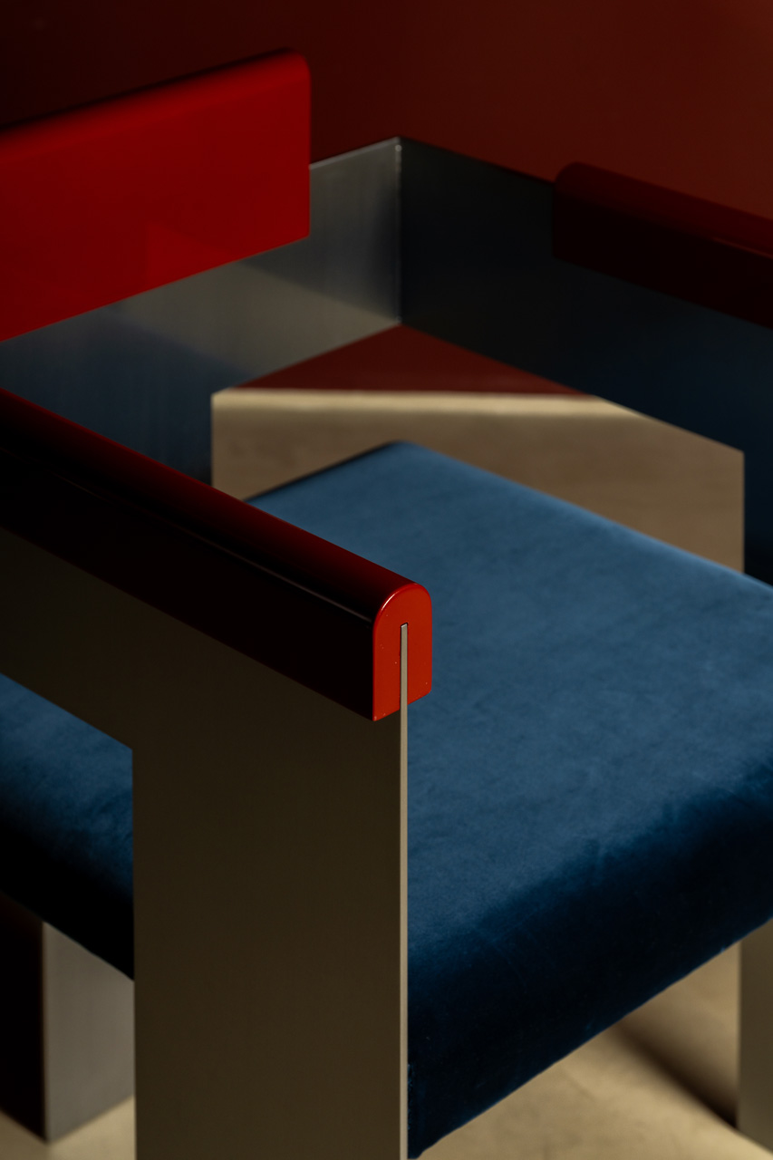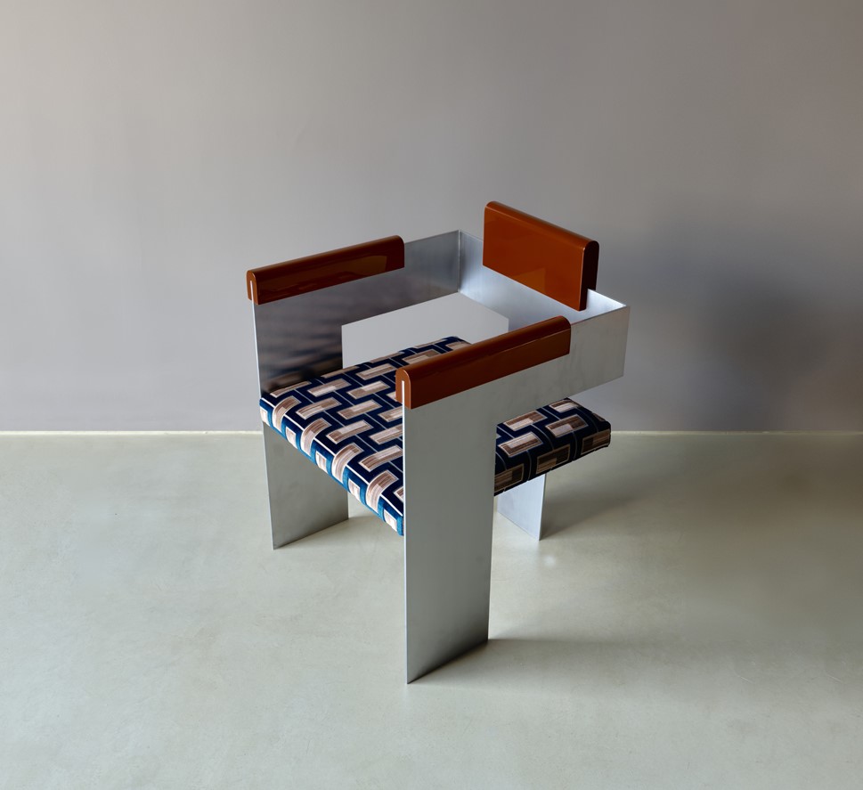 chair’s aesthetic. The iron plate of the two side legs is folded around to form the handles,