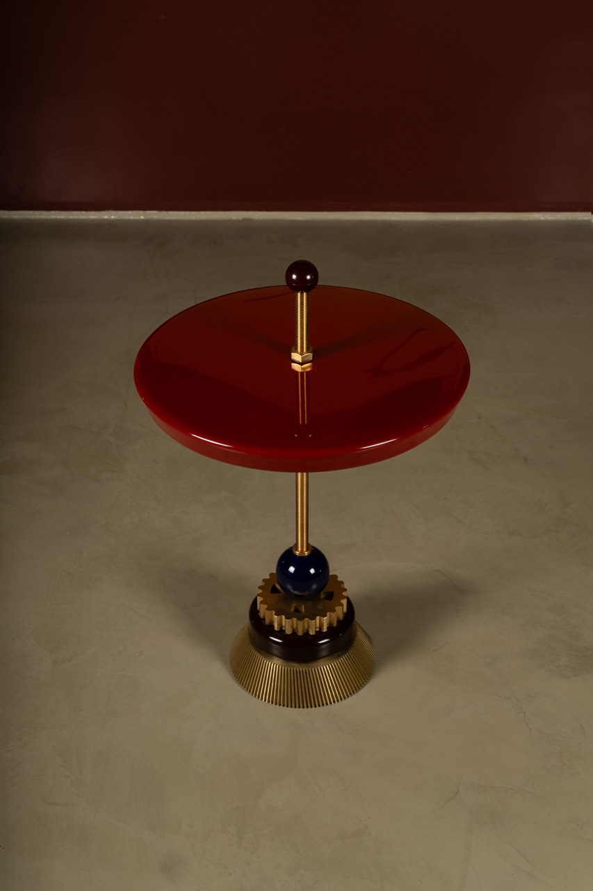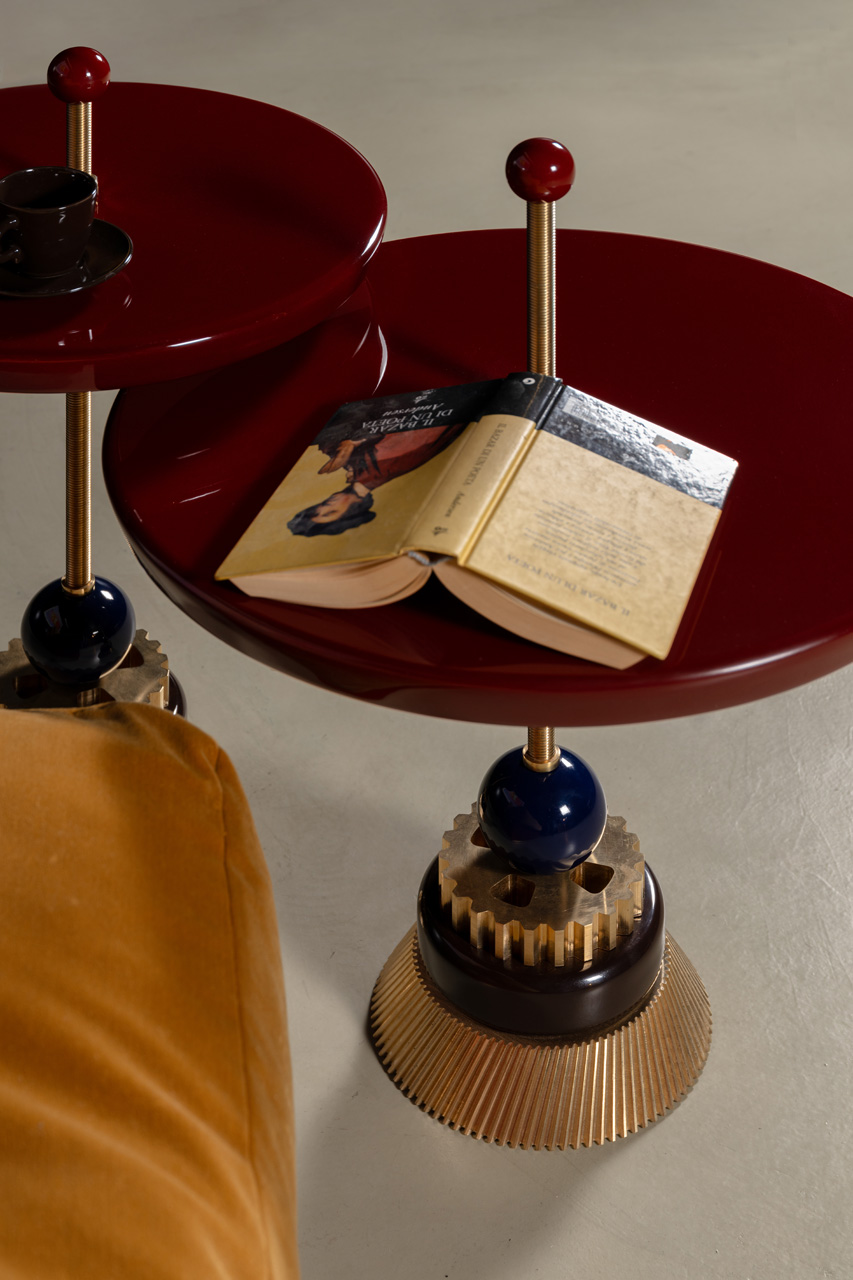 inspiration from the mesmerizing gearwheels of industrial machinery. Its circular top,