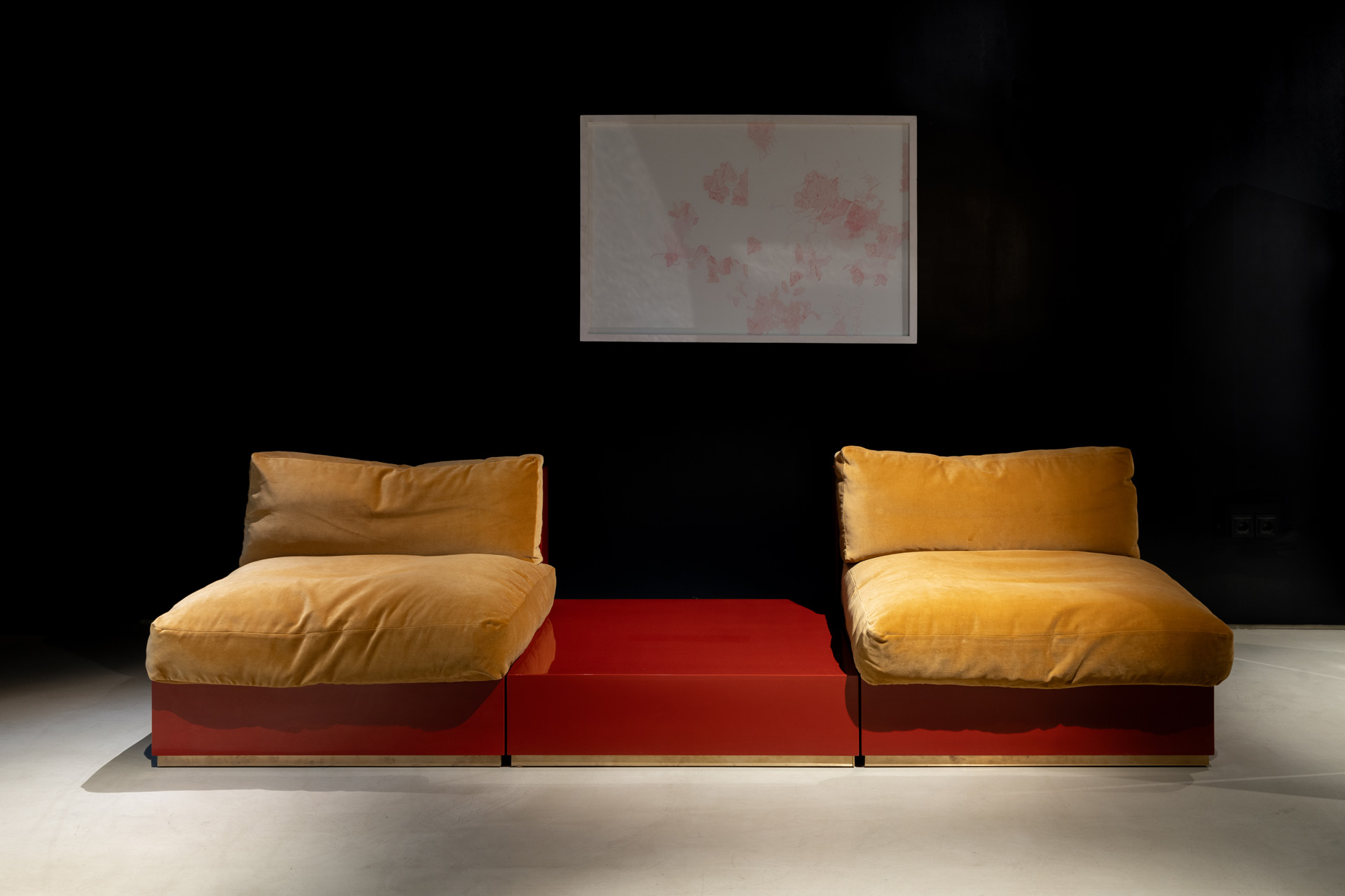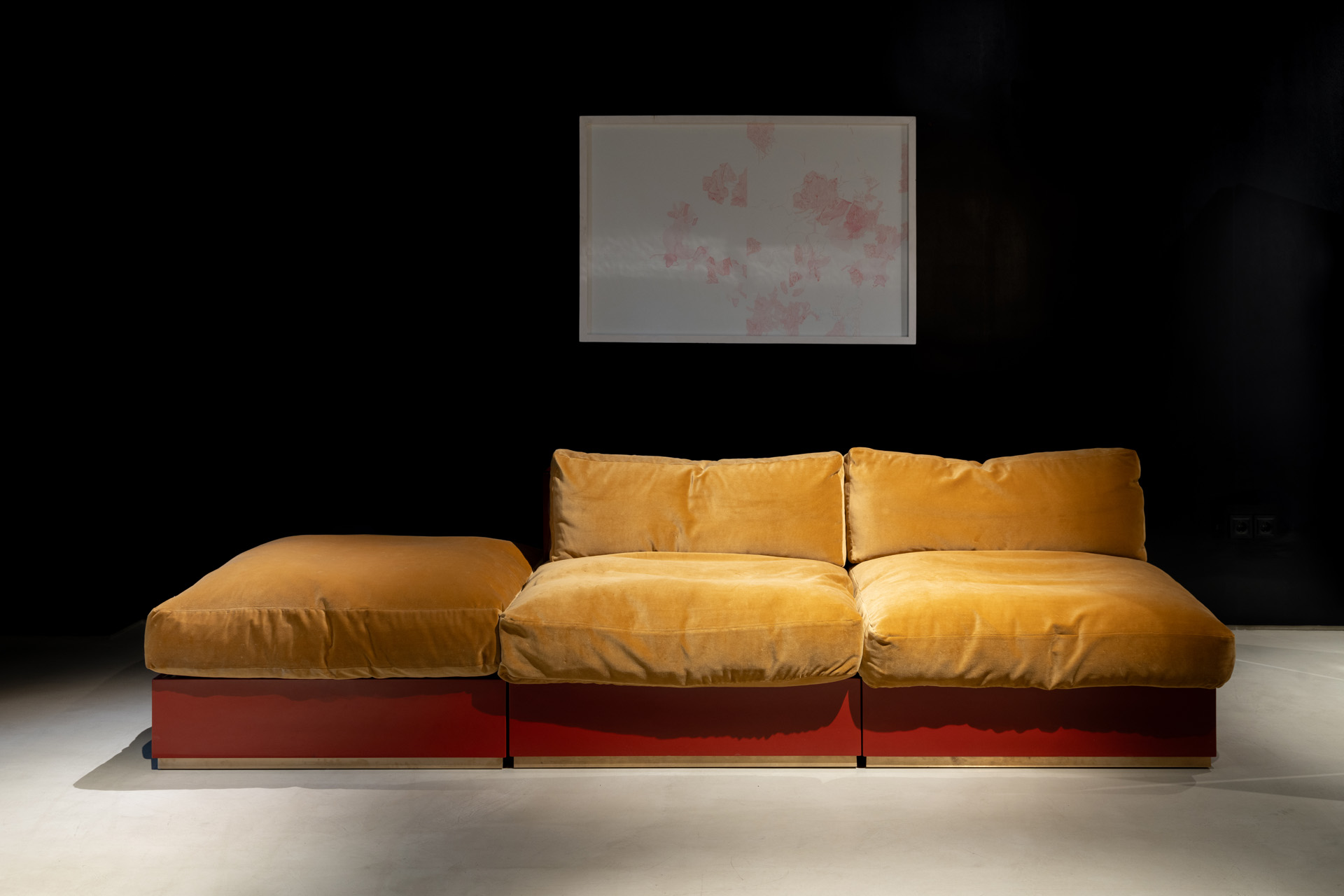 “Modular sofa composition, setting made by the union of the element Poltrona, Pouf and