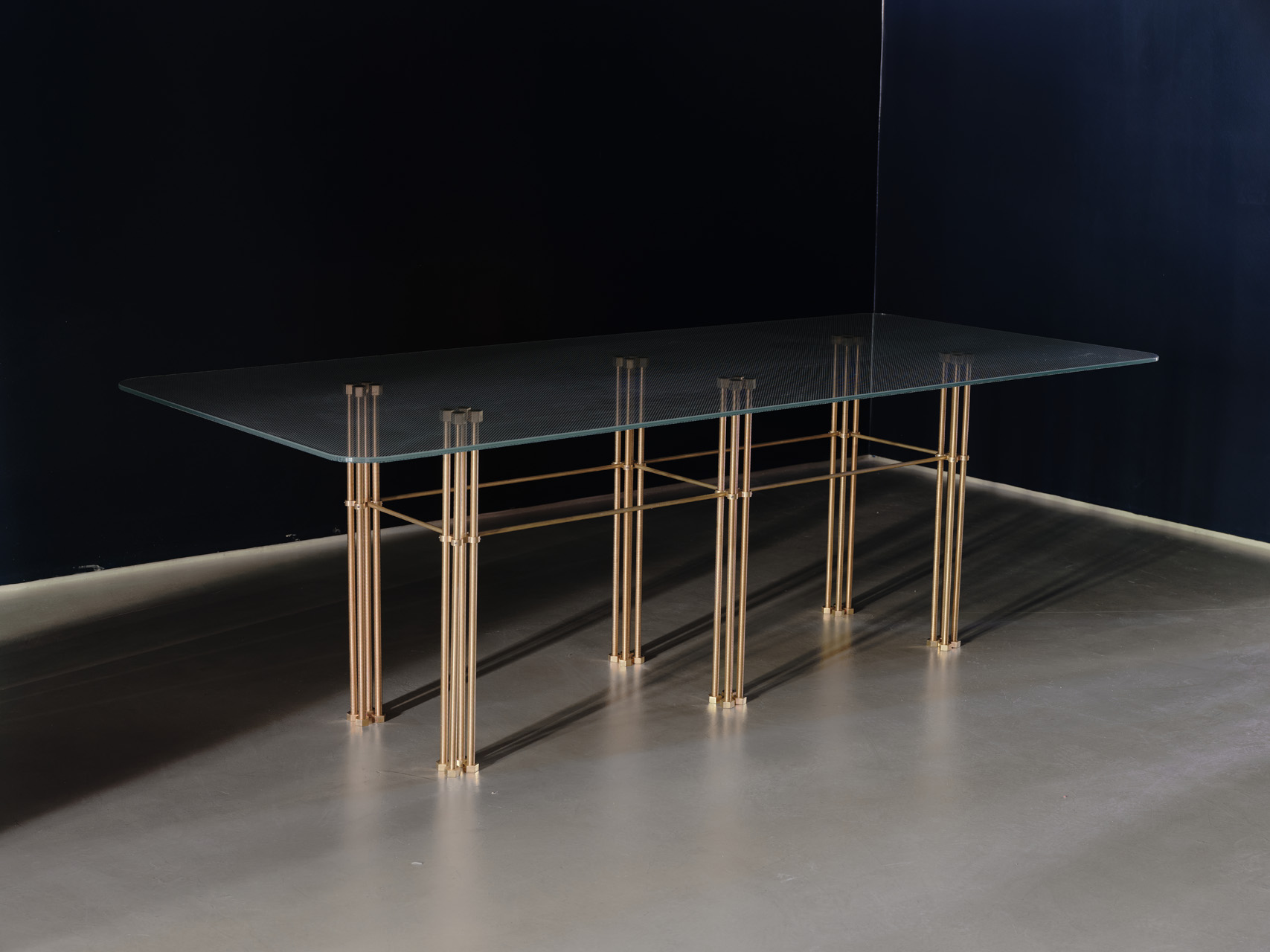 to mirror the form of screws and bolts. The Dentelles Dining Table design allows easy