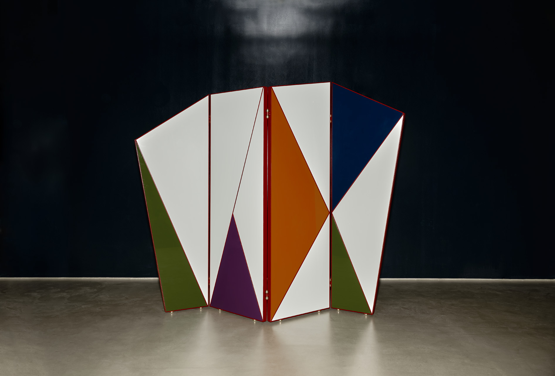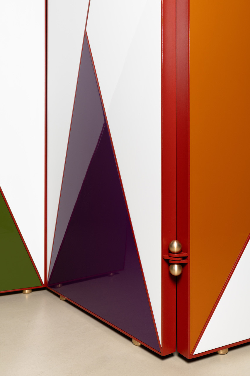 The Farfalla Paravent features a steel outline framing colorful panels reminiscent of the
