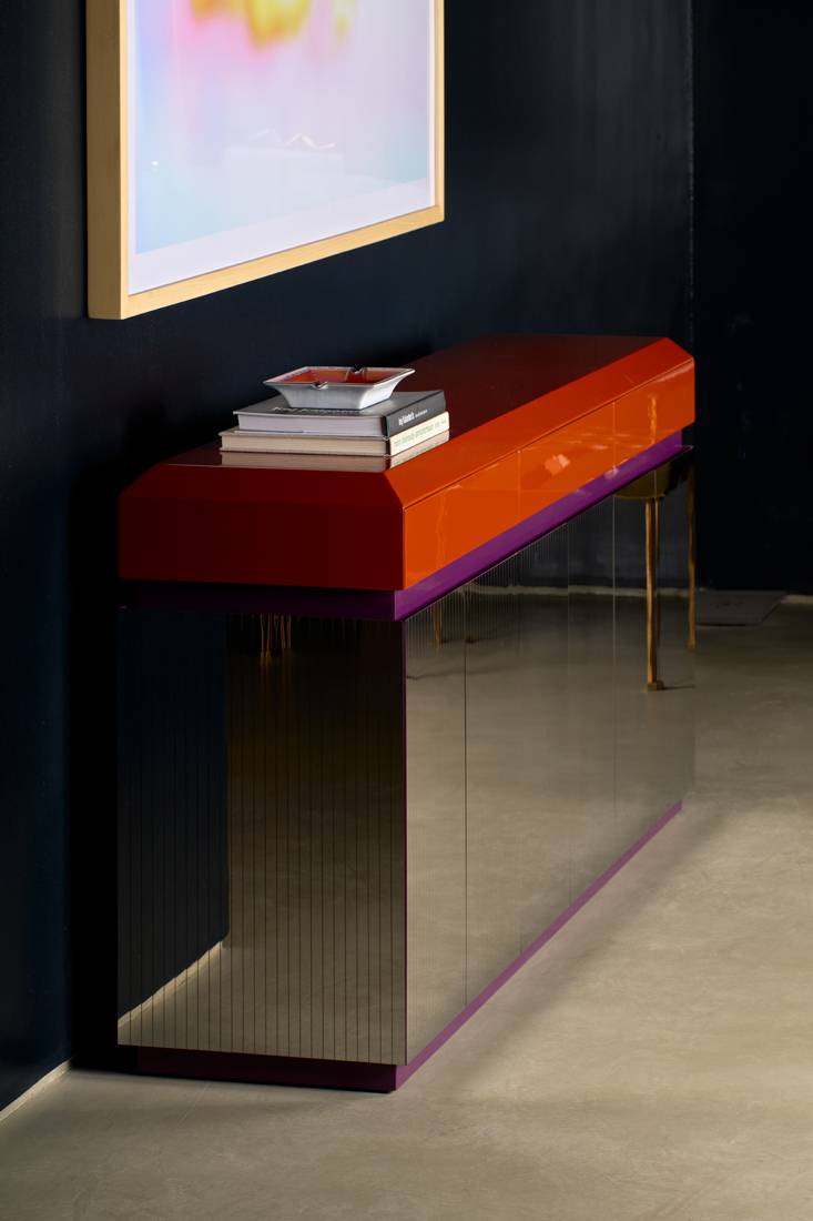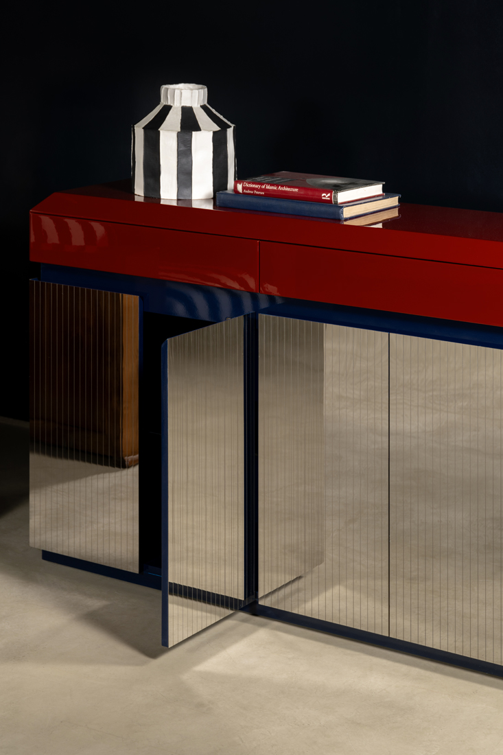 Made from lacquered wood, Prisma features an external facade adorned with grooved
