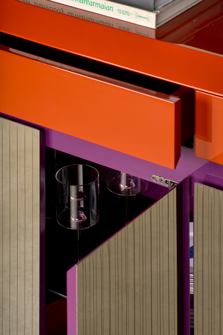 The sleek lines and colorful palette of the Prisma cabinet make it a standout piece in any