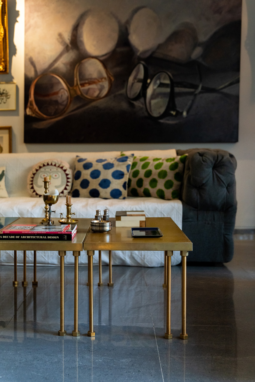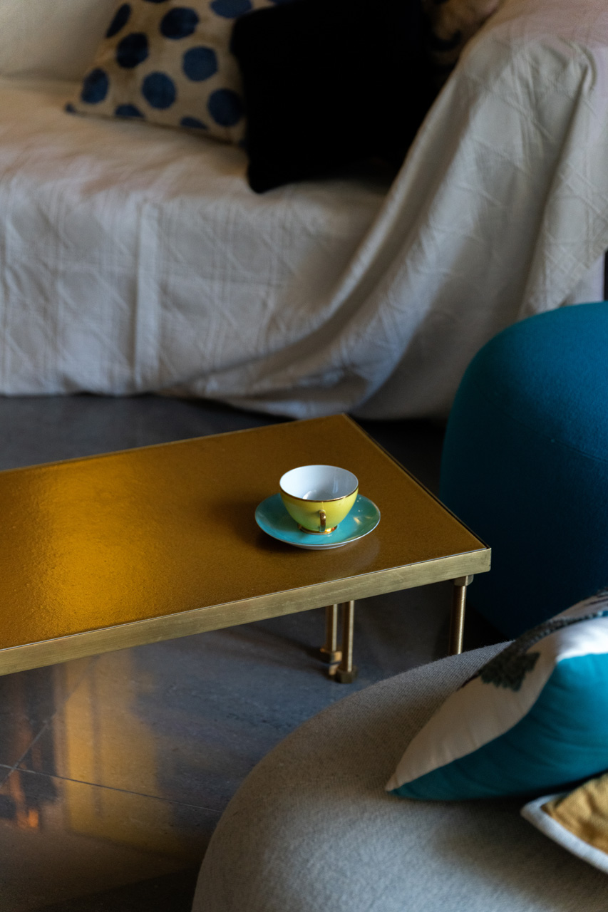 The body of the table is crafted from solid brass, lending both warmth and structural integrity,