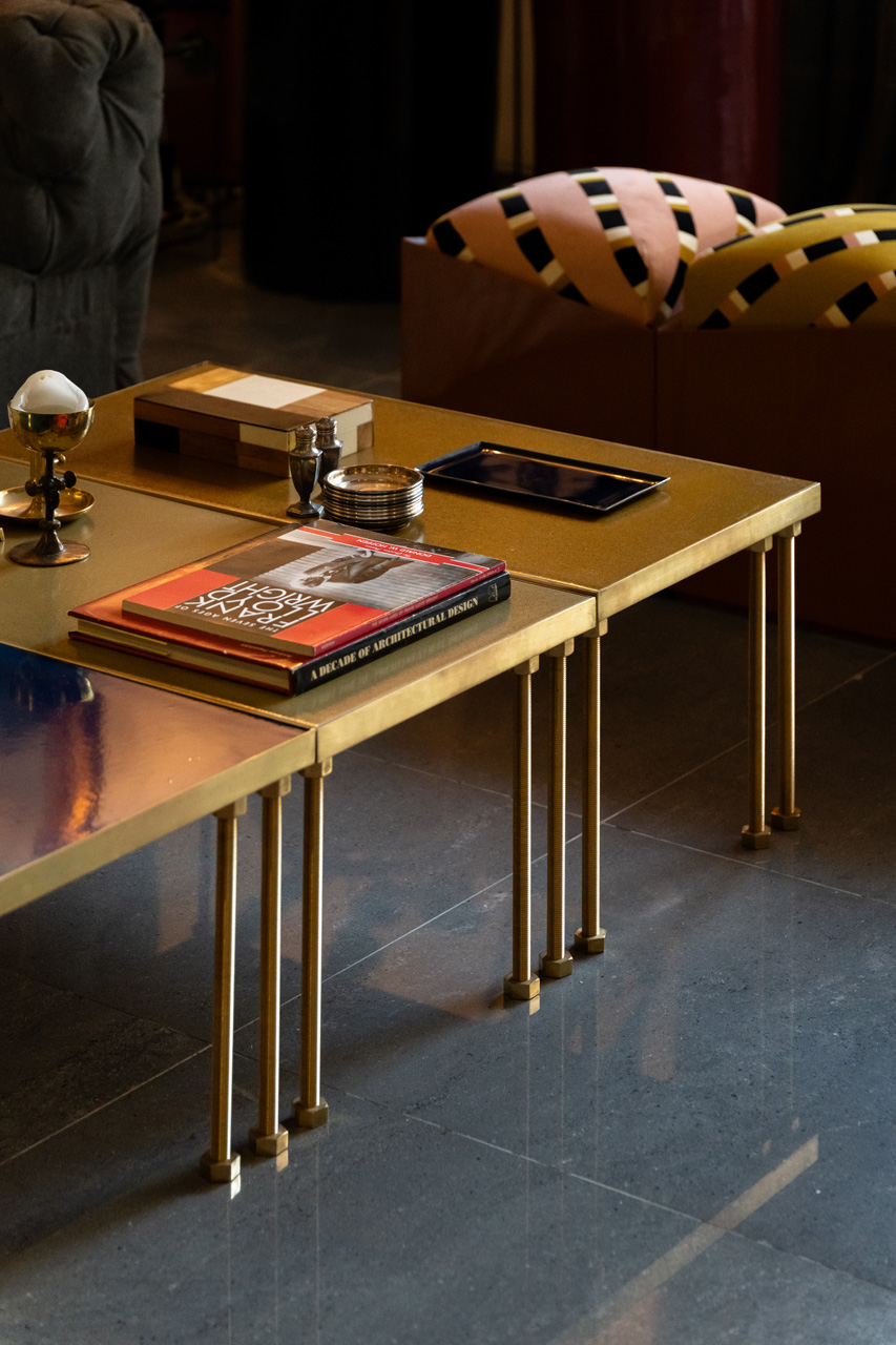 to form an expansive coffee table. Its modular design invites interaction and reconfiguration,