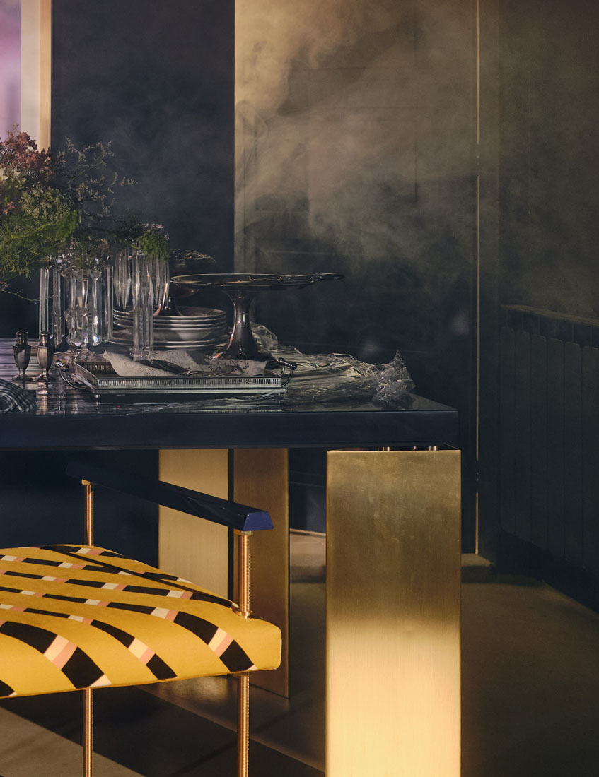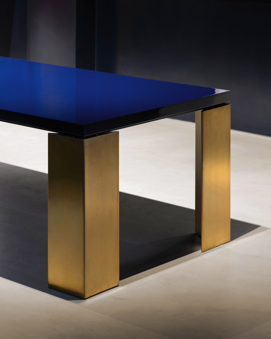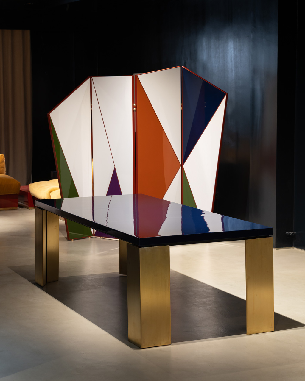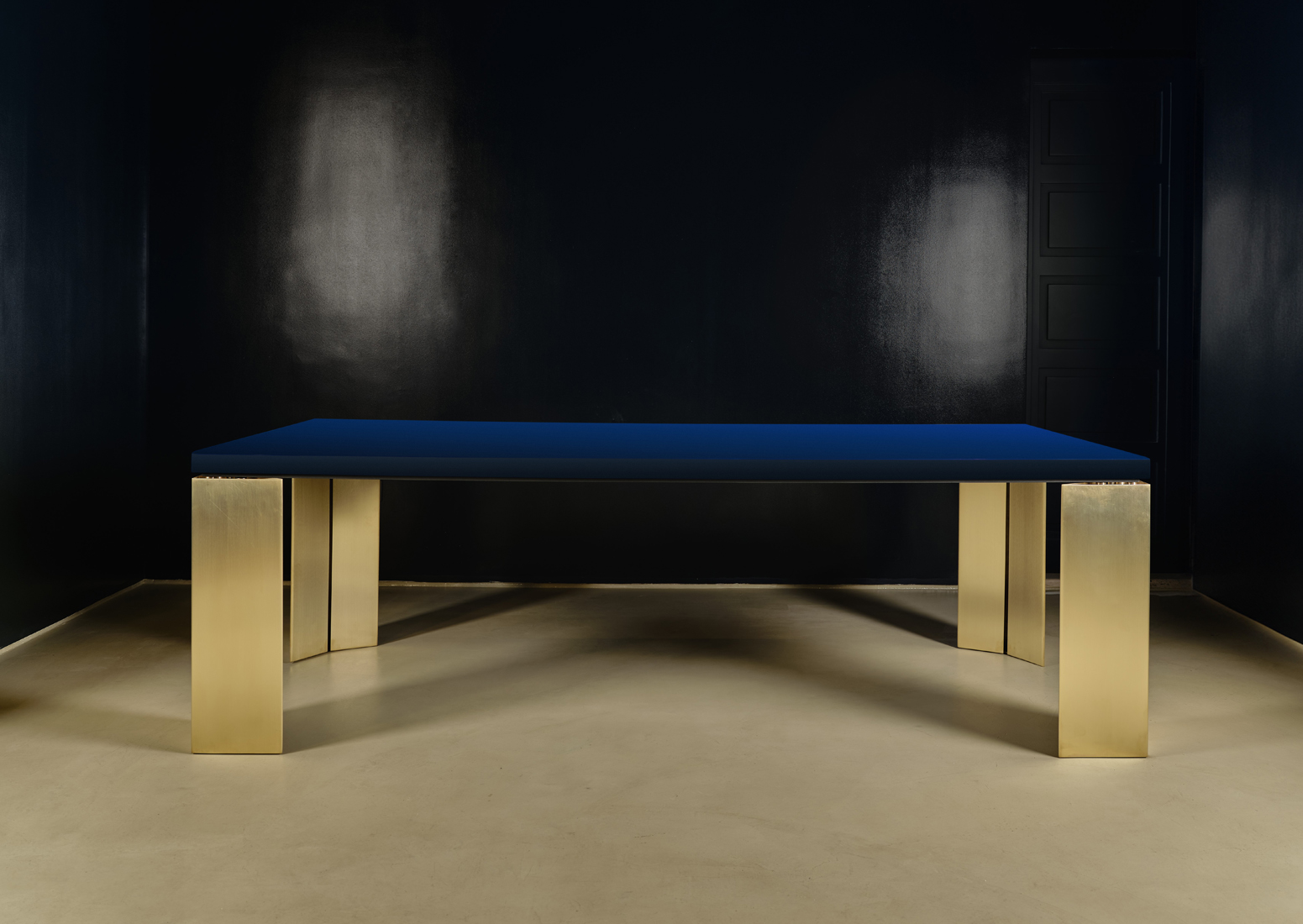 playfulness. Its legs are made of folded brass sheets, adding a touch of architectural