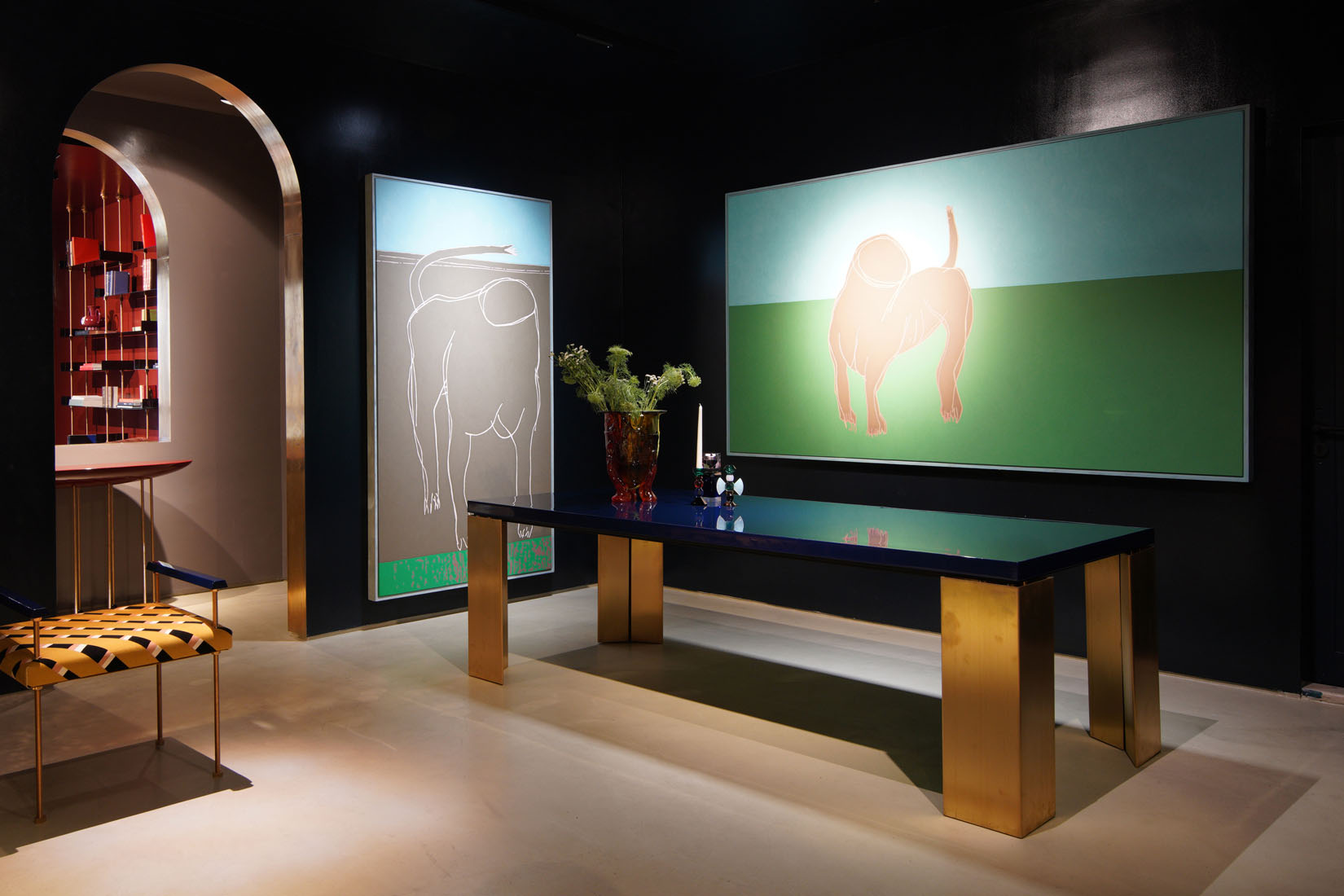 The Wrapped Dining Table harmoniously blends minimalist design and vibrant